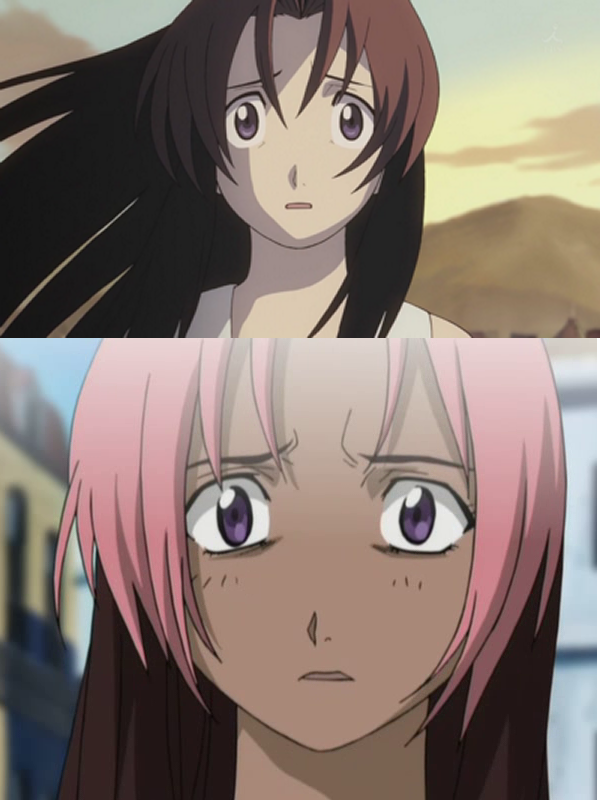 Just say top on bottom when referencing any differences you notice in how well the shots are draw, colored, how they're composed, backgrounds, use of angles, tone, expression, all that pretentious nuance stuff. Both series were made by the same studio and in most cases I was able to find a scene from a very similar angle with a similar emotion for the characters.